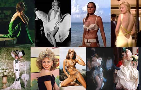 1- El vestido negro de Audrey Hepburn en "Breakfast At Tiffany's" (1961) 2- El vestido verde de Keira Knightley en “Atonement” (2007) 3- El vestido blanco de Marilyn Monroe en “Seven Year Itch” (1955) 4- El bikini de Ursula Andress en “Dr.No” (1962) 5- El vestido amarillo de Kate Hudson en “How to lose a guy in 10 days” (2003) 6- El largo vestido blanco de Audrey Hepburn en “My Fair Lady”. 7- El ajustado atuendo negro de Olivia Newton-John en “Grease” (1978) 8- El outfit de Raquel Welch en “One million years BC” (1966) 9- El corset de Nicole Kidman en “Moulin Rouge” (2001) 10- El vestido de novia de Sarah Jessica Parker en “Sex and the City: The Movie” (2008)
