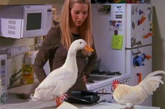 El pato y el pollo: Si bien me cargan los pájaros y hasta me dan fobia, la verdad es que ver a estos dos animales en medio del departamento de Chandler y Joey era demasiado divertido. Si incluso hay un capítulo donde Joey y Phoebe los hacen competir en carreras. Después no se supo nada más de ellos, sólo que se los llevaron a una granja.