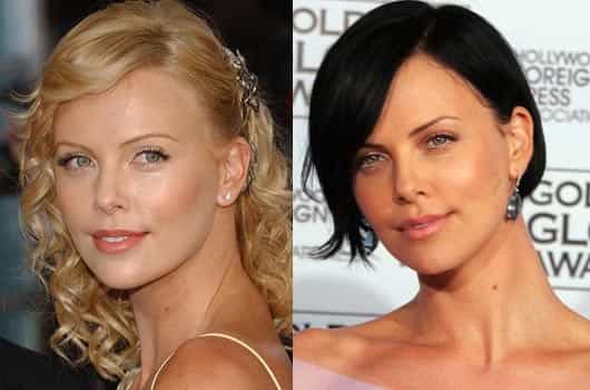Charlize Theron: Bella de cualquier forma. Como su piel es blanca y sus ojos claros, ambos estilos le vienen bien. Aunque de rubia se ve más dulce y luce todo su glamour, su lado oscuro no le viene nada mal, es más, resaltan mejor sus ojos.