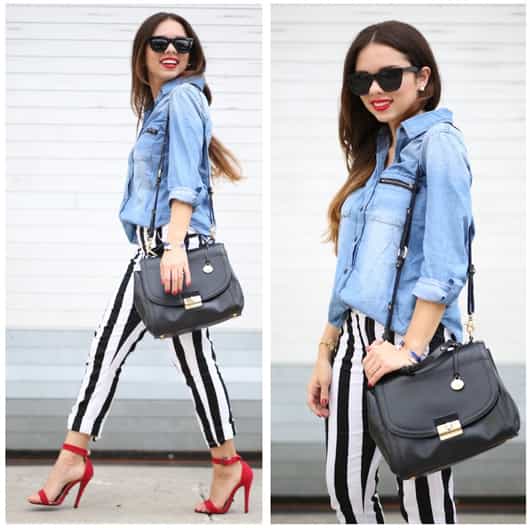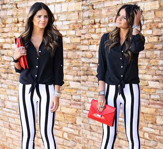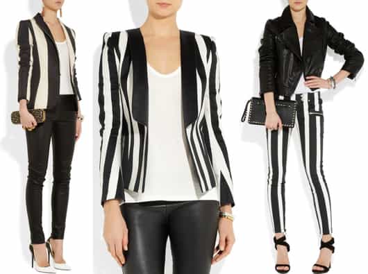 En mi opinión el negro con el blanco siempre se han llevado bien, sobre todo en la moda, juntos o revueltos. Para esta temporada vuelven en gloria y majestad. La calle está llena de niñas que, bien o mal, llevan pantalones o blazers con rayas, al más puro estilo Beetlejuice. Es cierto que el cómo llevar este tipo de rayas depende fundamentalmente de tu estilo, pero está sujeto principalmente a tu tipo de cuerpo. Aquí te dejo algunos tips que te pueden ser útiles a la hora de unirte a la pandilla Beetlejuice. 1. Nunca combinarlo con estampados de flores y figuras. ¡Simplemente no junta ni pega! 2. Si tus piernas son cortas, evita los pantalones tipo pata de elefante y opta por pitillos o pantalones ajustados. Si eres más bien voluptuosa o curvilínea desecha las leggins y prioriza unos pantalones de vestir pinzados. 3. No combines tus pantalones o leggins Beetlejuice con botas altas, a la rodilla o con flecos. Aprovecha la temporada y elije mocasines, ballerinas o sandalias. 4. Si lo tuyo es el look formal, combina tus pantalones pinzados con un blazer o blusa de los mismos tonos, blanco o negro, y calza unas sandalias con toques dorados para lograr un look moderno y formal. 5. Para lograr un look teen combina tus leggins con bototos militares, zapatillas estilo converse y alguna musculosa. 6. También puedes vestir jeans de este estilo con una polera suelta y un blazer negro, rojo o dorado para verte top, innovadora y no pasar desapercibida. 7. Para un look cocktail opta por pantalones pinzados sueltos, una blusita de un solo tono abrochada hasta el último botón, un cinturón delgado, algún colgante y una cartera de mano. ¡Simplemente elegante! Si bien los pantalones o leggins al estilo Beetlejuice no se pueden combinar con todo hay muchas formas de llevarlos y lucir bien. Acá van algunos estilos ara que se inspiren.