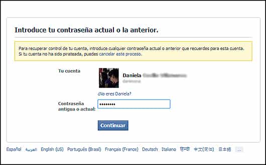 3. Con los datos que entregaste, Facebook busca la cuenta que debería ser tuya. Si tu cuenta es la que aparece, debes insertar tu contraseña. Algo así: