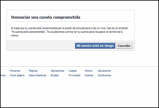 1. Entrando en este link, vas directamente a la opción que da esta red social para "Denunciar una cuenta comprometida".
