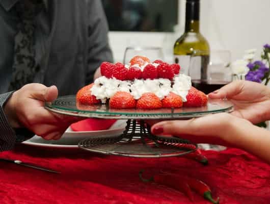 De postre, frutillas con crema, todo incentivando al juego del amor. ¿Qué mejor si se acompaña de la mejor música romántica?. Les juro que esa salida resultó más fascinante que cualquier otro panorama, ida al cine o a un parque, ya que ¡nos acercó muchísimo!. Y esa distancia que teníamos en la mesa al principio terminó por dejarnos ¡a centímetros de darnos un beso!.
