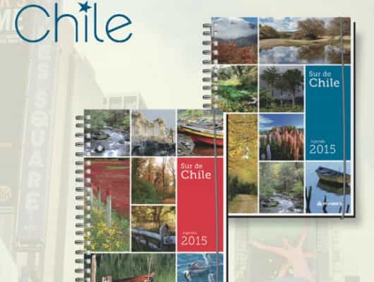 4. Sur de Chile, de Rhein: Si amas el turismo, el maravilloso sur chileno y no buscas un diseño específicamente femenino, esta agenda es para ti. Se trata de una hermosa bitácora para acompañar tu 2015, con las más hermosas imágenes de verdes bosques sureños, lagos encantados y bellísimos cerros. ¡Ideal para planificar los viajes que este nuevo año sueñas hacer! Dispone de amplio espacio diario para la escritura y su valor es de $6700.