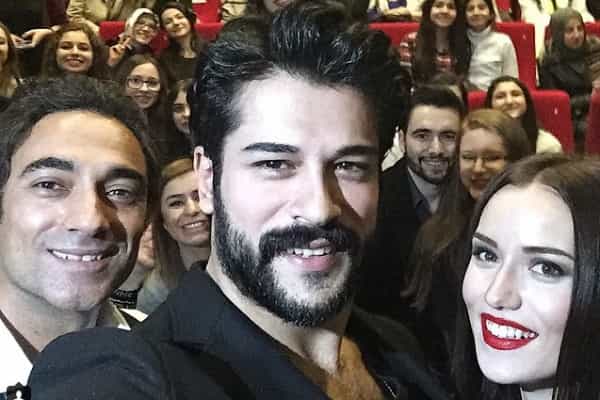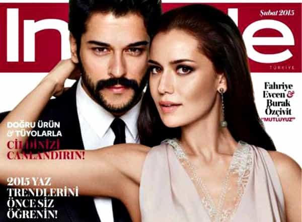Pero ¡no se emocionen tanto!, ya que el hombre tiene pareja. Fahriye Evcen, es la afortunada actriz turca que tiene su corazón, la cual además ha sido su co-estrella en varias ocasiones. Otra historia de amor que nace en el set. En la película Ask Sana Benzer comparten roles y juntos se abocaron a su promoción, además de concitar gran atención de la prensa, tal como pueden ver: