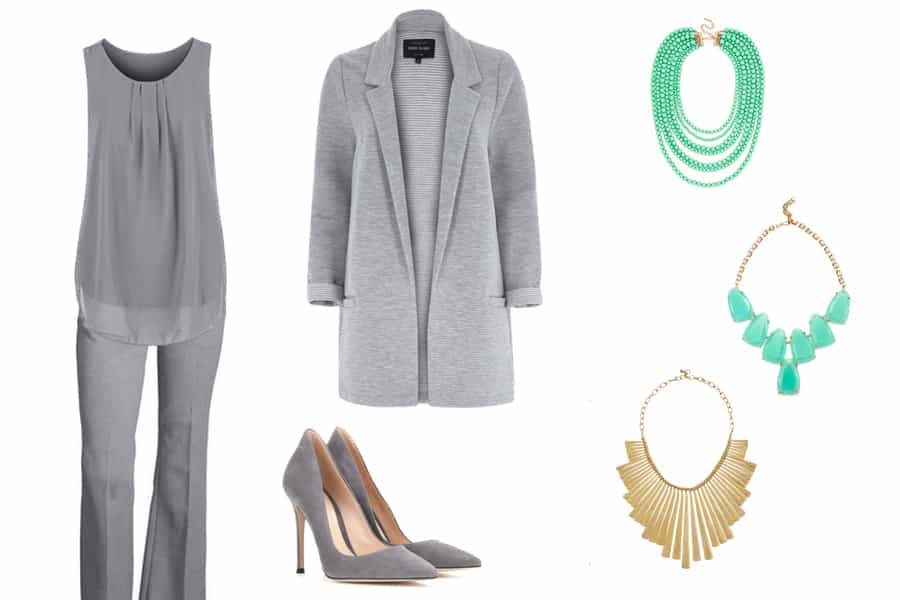 El gris, azul y negro son los tonos que siempre han estado presentes en nuestros inviernos. Además, es inevitable tener estos colores en nuestro armario, porque son básicos. Te permiten crear muchos looks distintos con pocas piezas, siendo infinitamente prácticos. Entonces, no es necesario que los saques y cambies cada vez que haya un nuevo tono de moda; simplemente tienes que adaptarlos. Una monocromía de gris tiene muchas opciones: puedes agregar un collar turquesa, verde, marsala, dorado, morado, lila, anaranjado, entre otros. Esto aportará intensidad, dulzura, elegancia y luminosidad, según el tono.