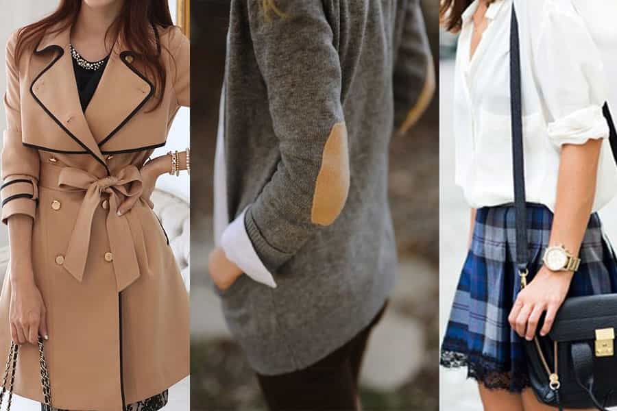 Las faldas son un must have it. Las blusas tipo escolar, también. El cuadrillé es un estilo que tiene que ir sí o sí. Por ejemplo, una falda con cuadros y una blusa blanca lisa. Las más osadas pueden incluso agregar una corbata con estilo más femenino, no tan gruesa ni larga. Los cardigans con coderas también debes agregarlos.