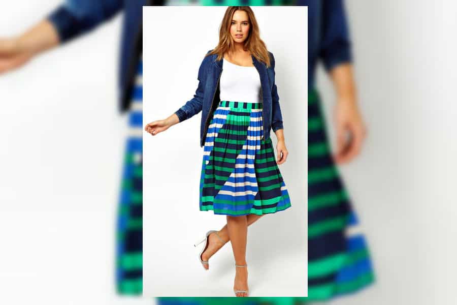 Una falda acampanada a la cintura te permite usar poleras ajustadas. En el fondo, estarás imitando el vestido de corte imperio, pero en dos piezas. Lograrás un look elegante y muy cómodo que ocultará tu pancita. Si tu falda tiene diseño, ojalá que tu polera sea de un solo color que combine. Agrega una chaqueta de jeans encima si quieres un look más casual o un blazer si quieres algo más formal.