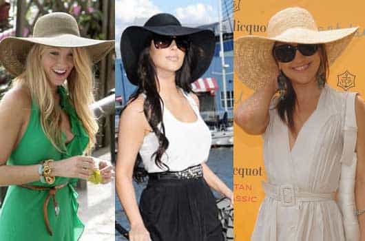 Anchos: Este tipo de sombrero se ve muy bien en una tenida playera. Además de proteger en gran parte de los rayos del sol, da un toque algo vintage y muy veraniego. Algunas de las famosas que optan por ellos son Blake Lively, Kim Kardashian y Kate Hudson. Si lo combinas con unos lentes de sol, obtendrás un look muy glamoroso.