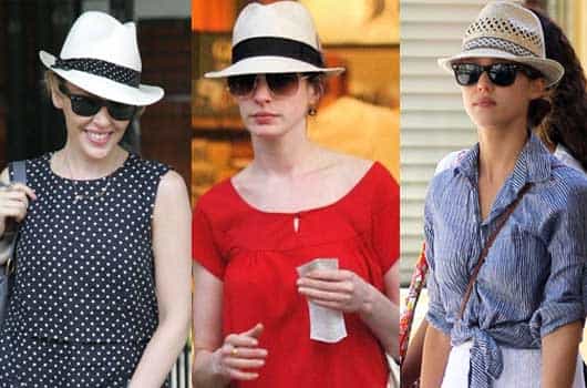 Panamá: Así se llaman este tipo de sombreros. Son un poco más pequeños, generalmente hechos de paja y con una cinta alrededor. Al ser de menor tamaño, tienen mayor utilidad, es decir, los puedes llevar perfectamente en la ciudad. Las celebridades también los llevan, miren a Kylie Minogue, Anne Hathaway y Jessica Alba.