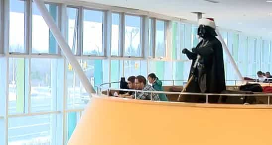 Después del salto, el oscuro Darth Vader, aflorando su lado más luminoso y tierno. ¡Feliz navidad y que el lado luminoso de la fuerza esté con ustedes en esta época de fiestas!
