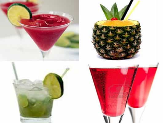 Cosmopolitan Se mezcla en una juguera: 1 medida de vodka; ½ medida de Triple Sec; ¼ medida de jugo de limón; 1 medida y media de jugo de cramberry o arándanos. Luego se agrega hielo y se vuelve a mezclar. Sírvelo, de prefetencia en una copa de martini.