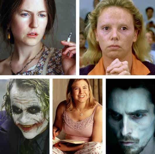 ¿Hasta dónde llegarías por conseguir el papel de tu vida? Claramente hay actores que no tienen límites y se entregan por completo a sus personajes. El mundo de la actuación no es simplemente aprenderse un guión, modificar el tono de voz y ponerse un vestuario. Los actores y actrices deben meterse en la piel de sus personajes, para lo cual muchas veces el maquillaje y vestuario no son suficientes y deben realizar cambios drásticos en su apariencia física. Hay muchos cambios impactantes que hemos visto en la pantalla grande, pero aquí les dejo mi top 5 de los que me dejaron con la boca abierta: 1. Nicole Kidman: Para convertirse en la escritora Virginia Woolf en la película "Las Horas" (papel que le valió un Globo de Oro y un Oscar a la Mejor Actriz Principal), Nicole Kidman tuvo que utilizar una prótesis nasal y un maquillaje especial para "afear" sus rasgos. 2. Charlize Theron: En la película "Monster" Charlize engordó 15 kilos, usó varias capas de maquillaje y gelatina para marcar los rasgos agresivos de su personaje y cambió su registro de voz. Con este escalofriante cambio se ganó el Oscar como Mejor Actriz el año 2003. 3. Heath Ledger: Para interpretar al Guasón en la película "Batman: El Caballero de la Noche", Heath tuvo que someterse a largas sesiones de maquillaje. Antes de comenzar la filmación pasó más de un mes solo encerrado en un hotel para encontrar el personaje, su voz, su postura y su psicología. Su papel le otorgó un Oscar póstumo como Mejor Actor de Reparto. 4. Renée Zellweger: Para convertirse en Bridget Jones, Renée tuvo que consumir 5000 calorías diarias y engordar 13 kilos, además de tomar clases para cambiar su acento americano a británico. Esta transformación le valió una nominación al Oscar como Mejor Actriz el 2001. 5. Christian Bale: Para interpretar a Trevor Reznik en la película “El Maquinista”, Bale tuvo que adelgazar 28 kilos. Su alimentación consistía en una taza de café y una manzana (o una lata de atún) al día y correr. Al poco tiempo no podía casi ni caminar. Este personaje puso en riesgo su salud al llegar a los 45 kilos cuando terminó el rodaje. Este cambio hizo historia y Christian Bale se transformó en el actor que más peso perdió para una película.