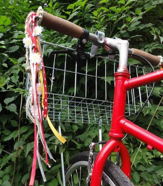 Me agrada mucho como actualmente las bicicletas están plagando las calles del país. No solo en Santiago, hay lugares como Concepción o Viña del Mar que están incorporando como transporte diario. A mi parecer es el mejor medio para moverse dentro de la ciudad, sobre todo si lo comparamos con el nefasto sistema de transporte público que tenemos en Santiago. Al lado del Transantiago y del metro andar en bici es mucho más mejor, es cómodo, haces ejercicio, tomas aire, transitas de forma libre y escuchas canciones lindas (eso sí, con precaución). Y para hacer el paseo más lindo, podemos enchularla y arreglarla a nuestra pinta, adaptándola a nuestro estilo con sencillos toques que pueden marcar la diferencia. Acá te dejamos algunas ideas para decorar su bicicleta de una manera muy artesanal. Canastito con flores: Necesitas tijeras, flores plásticas e hilo de pescar para fijarlo a la canasta. Para pegarlas, primero debes unir las flores con la aguja y el hilo de pescar, pasar la aguja desde la base de la flor por el medio, como en la imagen, y así sucesivamente hasta que hayas unido la cantidad de flores que querías. Con la misma aguja e hilo, "amárralas" al canasto, anda pasado la aguja por los orificios del canasto y asegúralas. Si esta medida no te convence del todo puedes reforzar La Gotita.
