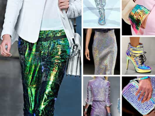 La cosa es que al parecer esta es nueva tendencia y para esta temporada primavera/verano viene mucho el tornasol, sobre todo en colores verdes, lilas y dorado. Si te tinca el estilo puedes utilizar prendas de este tipo en tus jeans, poleras, e incluso zapatos y, debo decir, que no me molestaría nada tener una carterita, anteojos o pintar mis uñas así. De hecho lo encuentro choro, el tema es que hay que saber dar con el punto exacto para no verse recargada.