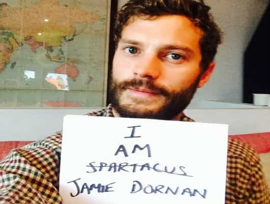 En su primera y única foto –hasta el momento- aparece con un papel en sus manos donde se puede leer: "I am Spartacus Jamie Dornan" (Soy Spartacus Jamie Dornan).