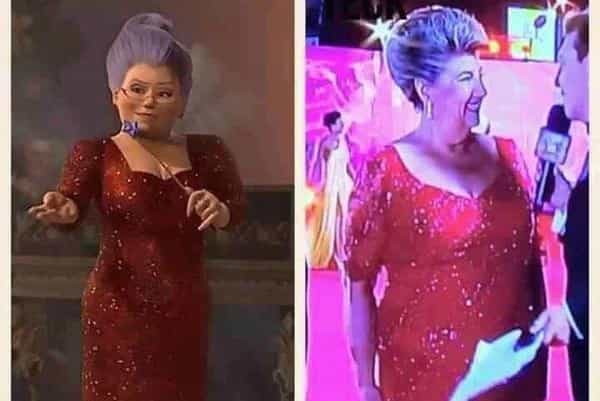 Otra que dio que hablar fue la alcaldesa de la Ciudad Jardín, Virginia Reginatto. La carismática autoridad lucía ¡idéntica! al Hada Madrina, personaje de la película “Shrek 2”. Mismo escote, aplicaciones y peinado. Todo, una réplica exacta - 1 a 1 - de la antagonista del film animado.