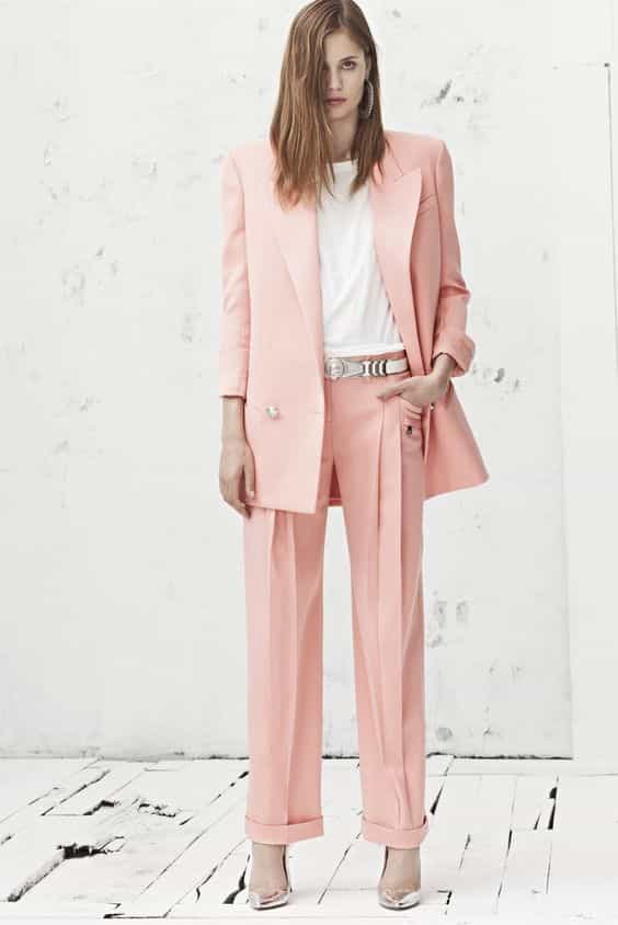 3. Rosa cuarzo (13-1520 Rose Quartz): Los looks más románticos de esta temporada no podrán dejar de tener el rosa cuarzo. Fácil de combinar con otros colores, pero perfecto con el blanco, como ves en la imagen, o con el azul celeste.